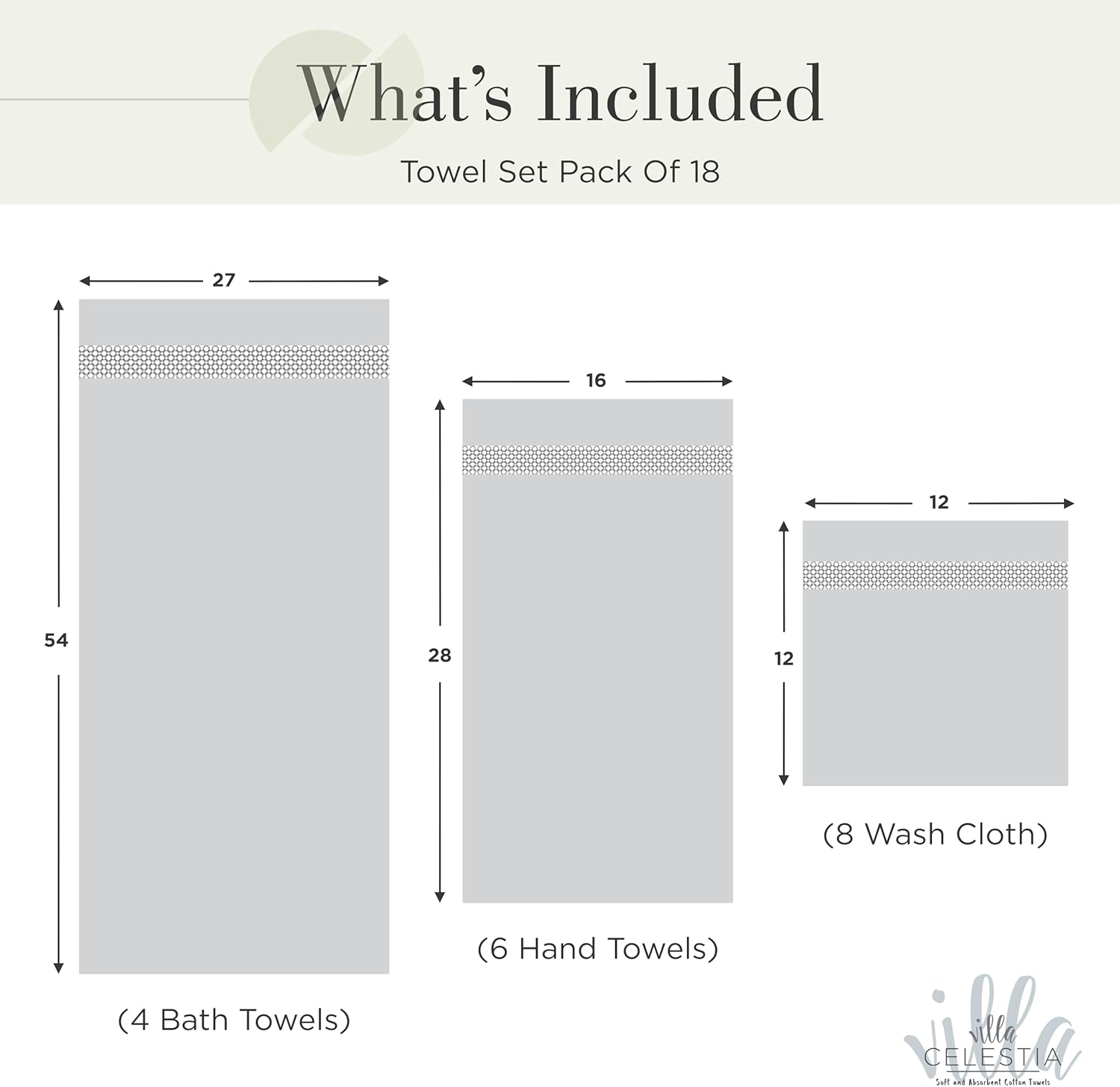 | Size | Towel Set - Pack of 18 |