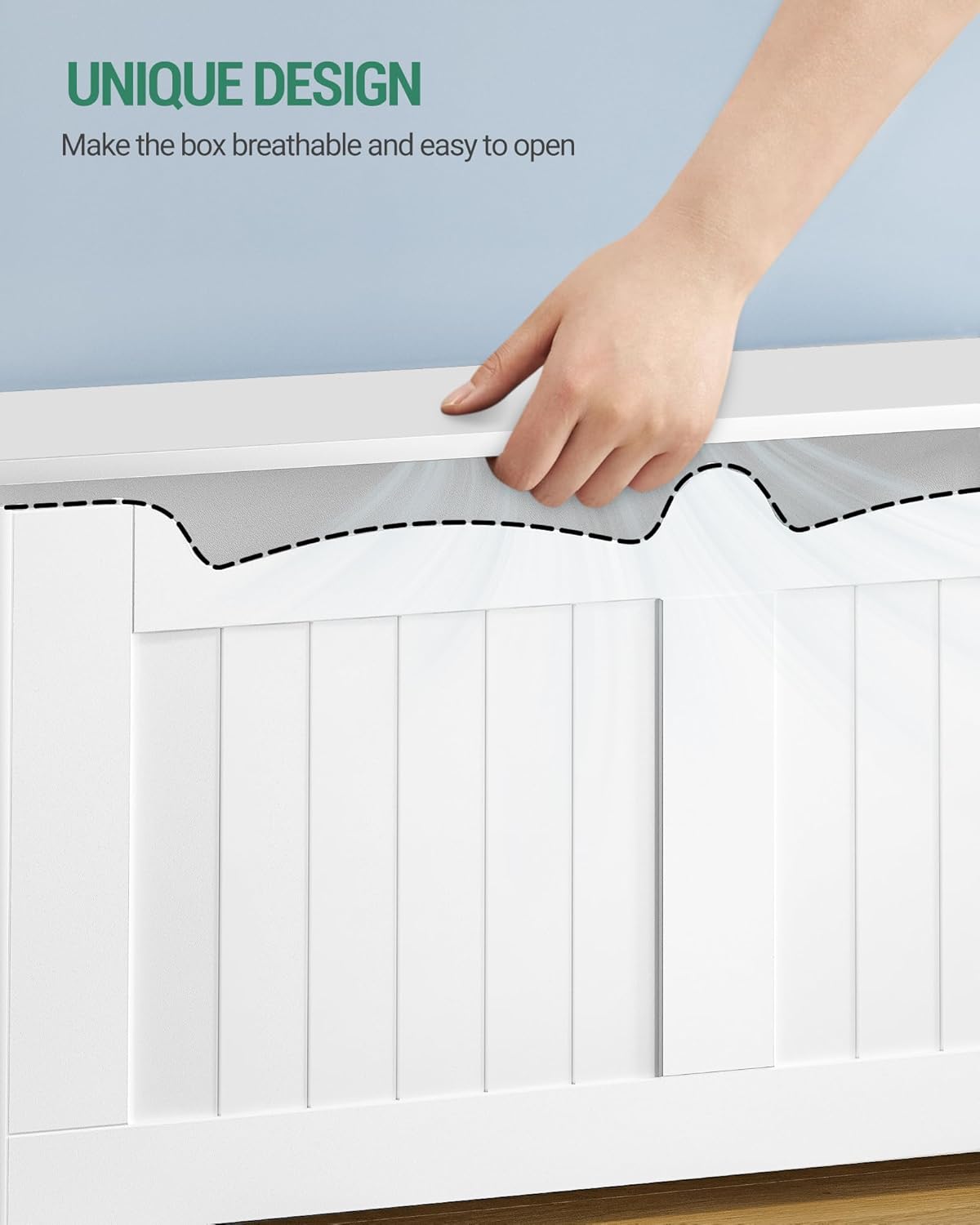 39.4" Storage Chest, Storage Bench Trunk with 2 Hinges, Wooden Box, Lift-Top Chest Organizer, Shoe Bench for Entryway, Bedroom, Living Room, White 01003XSB