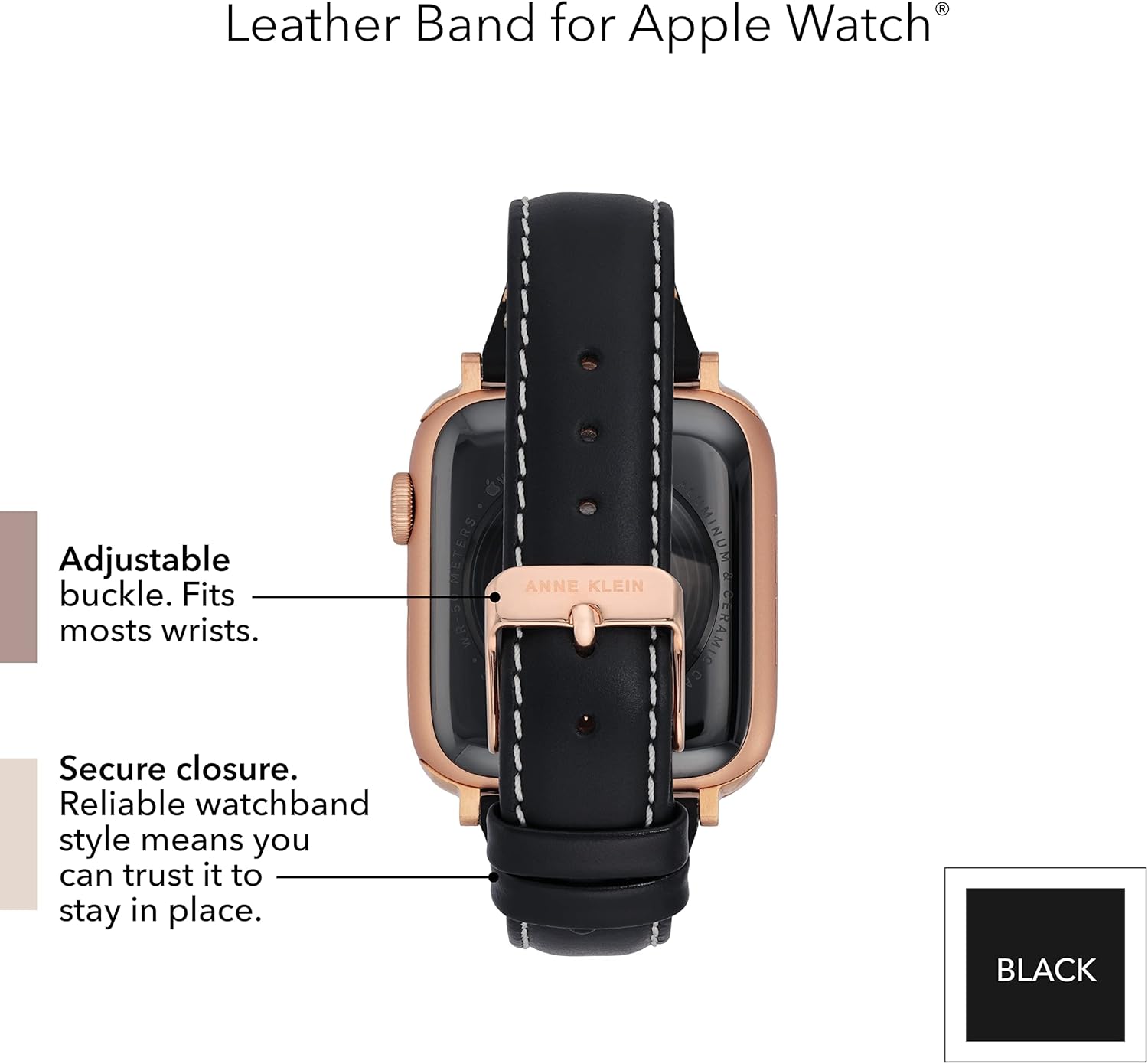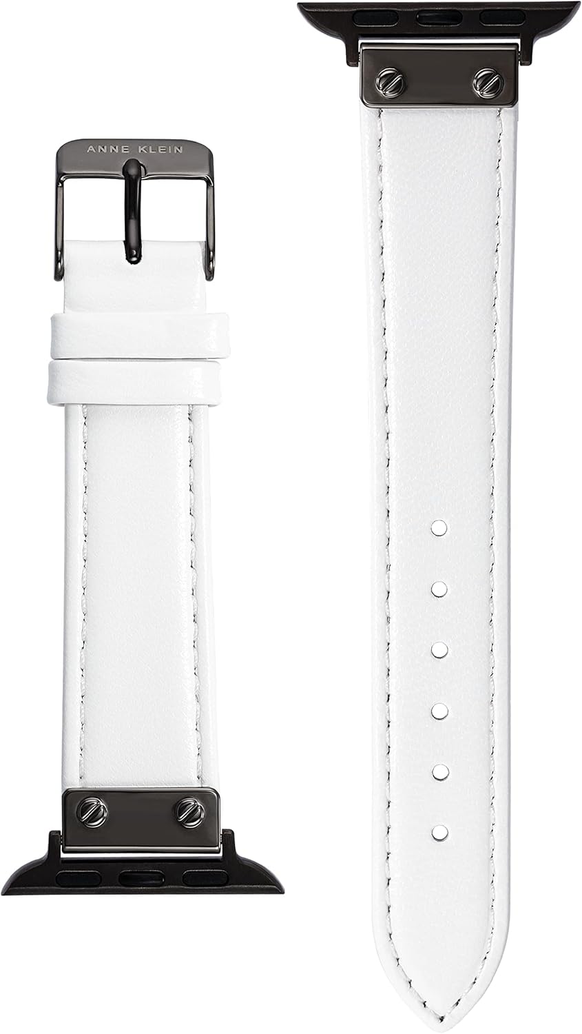 The Anne Klein Apple Watch Replacement Band is a high-quality option that is as functional as it is stylish. Made from genuine white leather and featuring gun screw lugs and a polished stainless steel buckle, this Anne Klein band a wonderful complement to your existing wearable device. It’s a high-quality Apple Watch band for women. Compatible with 38mm, 40mm and 41mm Apple Watches. Please note that the Apple Watch device is not included; bands are sold individually.