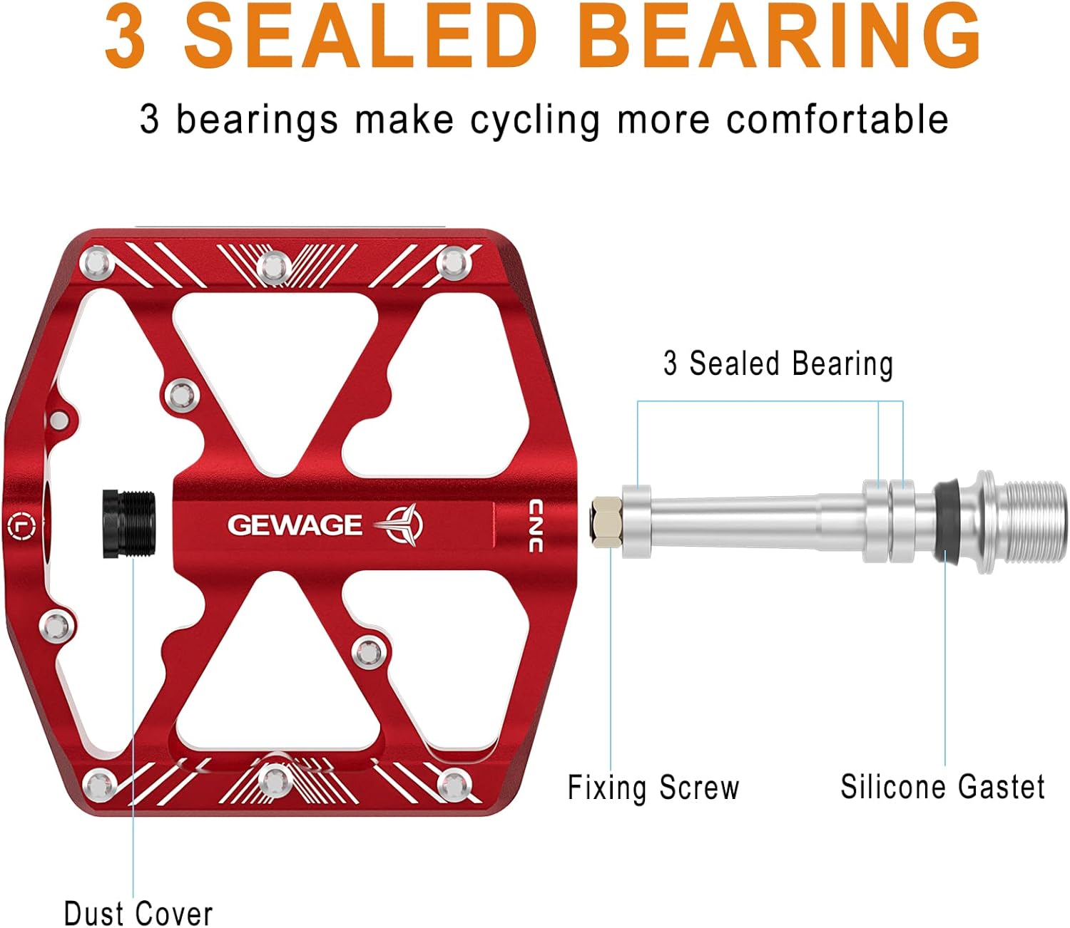 • 【Smooth Bearings】: The platform pedals are equipped with 3 bearings distributed at the load points of the bicycle pedals, making the overall structure stronger. The bicycle pedals adopts a seal design, nut seal + multi-layer seal, this construction can effectively prevent spindles from water and dust which will cause noise and other problems.
