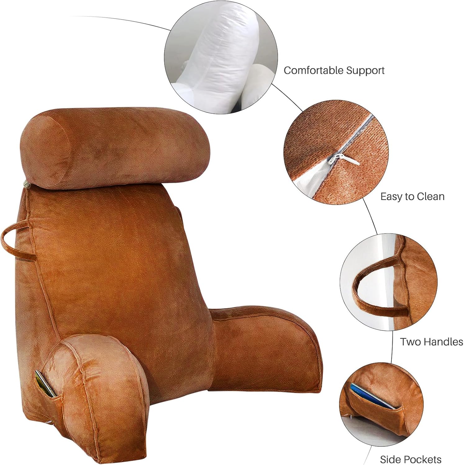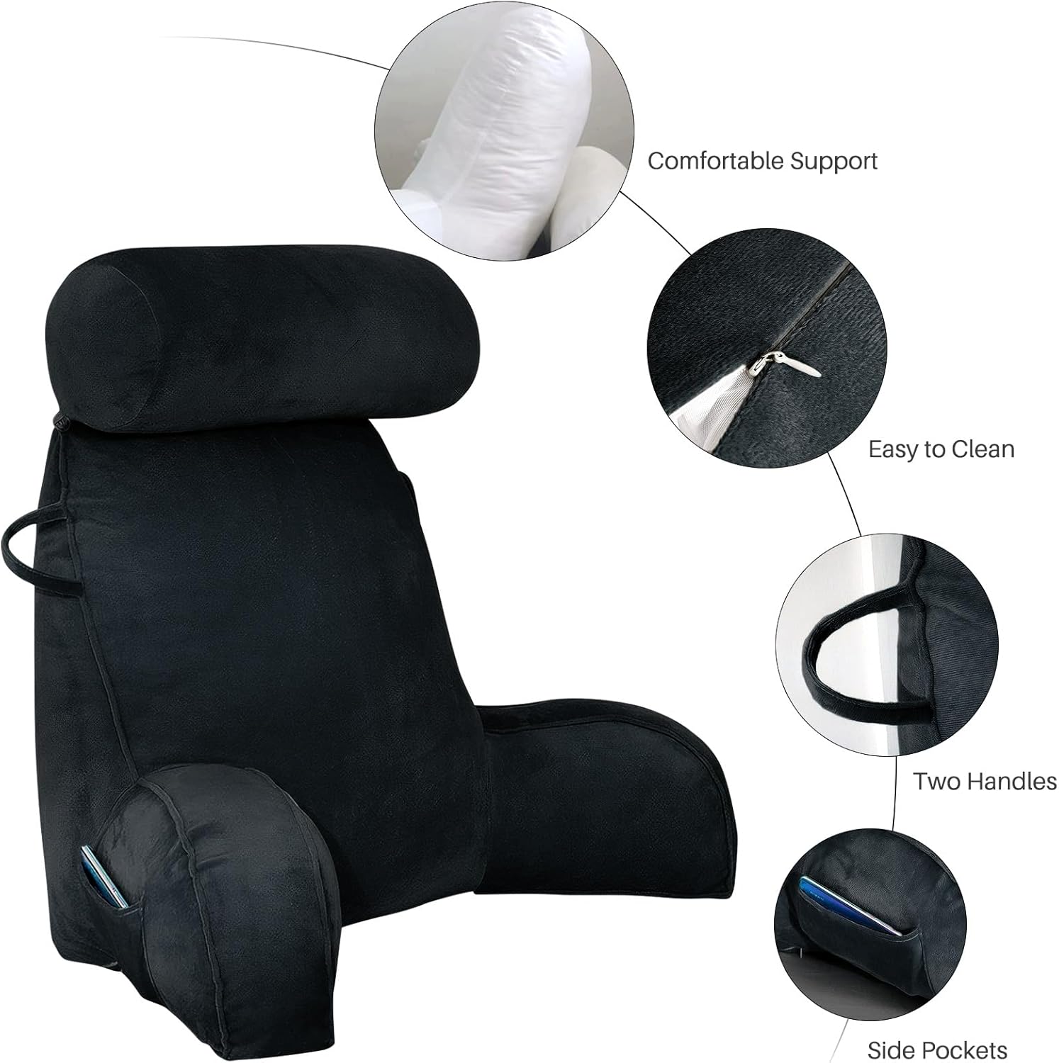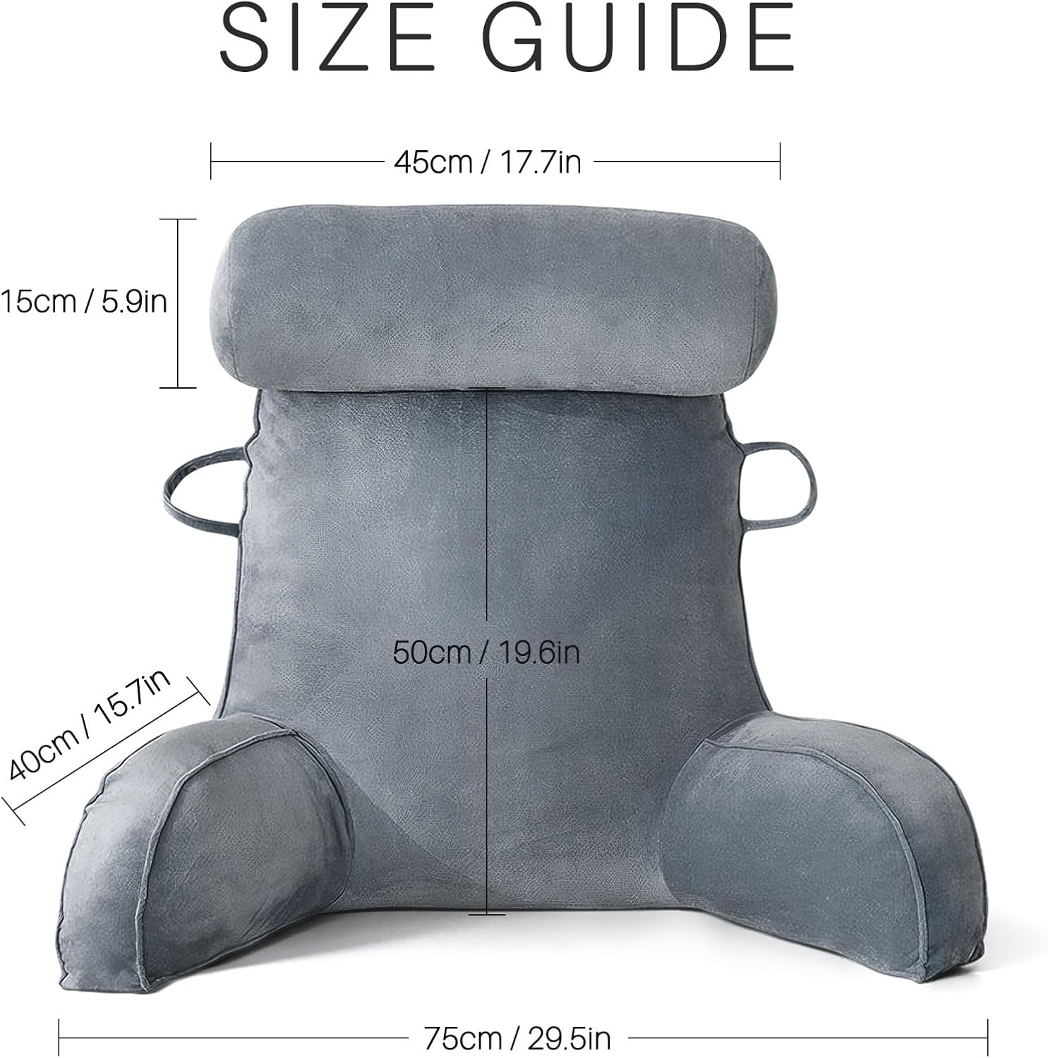 Bed reading pillow: we innovative designed a 45-degree angled backrest that seamlessly conforms to the natural curves of your head, neck, shoulders, back and lumbar. This tailored support not only provides a sense of security but also alleviates muscle tension and soreness, allowing you to relax and unwind effortlessly while reading or resting.