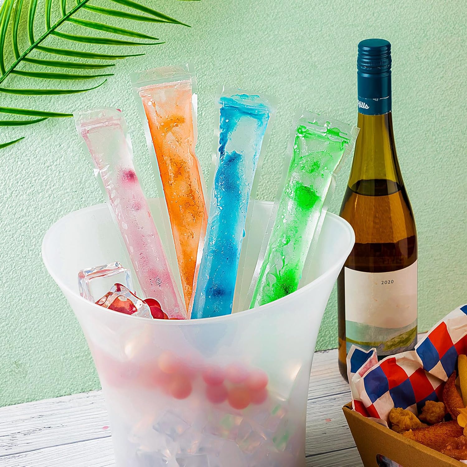 Features: These ice mold bags pouches are suitable for making various food like yogurt, fruit frozen drinks, ice lolly, ice candy and other frozen snacks, ideal for camping, picnics, kids parties, boating, trips and other parties. The ice lolly mold bags are practical gifts for your family, friends, colleagues and other people especially who love DIY projects, which will make them happy and surprised. Specifications: Material: plasticFunnel: silicone Color: clearSize: approx. 11 x 2 inches (L x W)Package includes: 1000 x Ice lolly mold bags5 x FunnelNotes: Manual measurement, please allow slight errors on size. The color may exist a slight difference due to different screen displays.