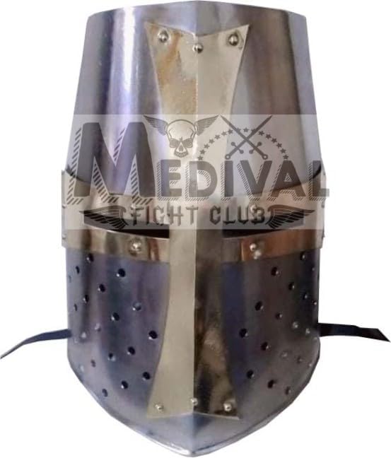 Medieval Fight Club Crusader Great Helm Medieval Knights Templar Helmet Armor Silver-n5 Classic crusader helmet hand-forged with 18 gauge polished carbon steel. Well-vented with 56 breathing holes and featuring a soft leather liner, helmet is fully functional and wearable. It is 14 inches tall and fits adults. NOTE: Remote Are Delivery Charges are payable by buyer if He want to pay . Else order will be cancelled automatically . Important notice- This product is 100% replica of the old / medieval times and due to its natural craft 3% difference in design and 3% color in finishing (The Product is same as like a picture 3% difference) all over the world. Item may vary between 3% design and 3% color. Here the information is already being given so that there is no time later.