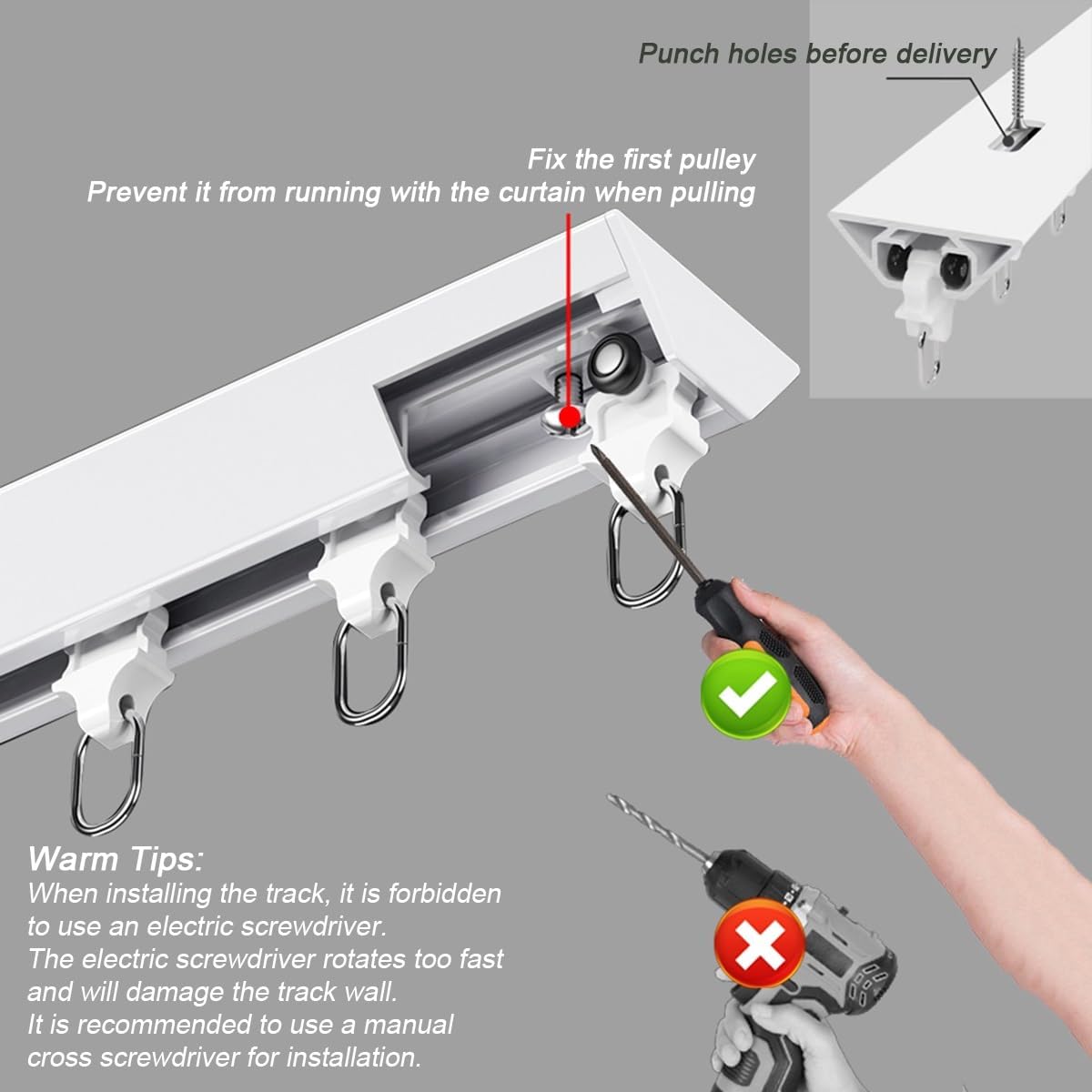 Transform your living space with our premium curtain rails, designed to enhance both functionality and style. Made from high-quality aluminum, these curtain tracks provide exceptional strength and durability, effortlessly supporting up to 20kg of weight. The sleek design ensures that they seamlessly blend with any interior decor, making them a perfect choice for your living room, bedroom, or office. Experience the convenience of smooth operation with our specially designed pulleys. Whether you're opening or closing your curtains, the effortless glide ensures a hassle-free experience every time. This feature is especially beneficial for larger windows or heavy drapes, providing a practical solution for everyday use. Available in a range of lengths from 100cm to 600cm (3.3ft to 19.7ft), our curtain rails can be customized to fit your specific space, allowing you to create the perfect ambiance in any room. Each track is equipped with 8 pulleys and 2 end caps per meter, ensuring a secure and stable installation. Before you purchase, we recommend checking the dimensions to ensure a perfect fit for your needs. Upgrade your home decor with our reliable and stylish curtain rails, and enjoy the blend of practicality and elegance they bring to your windows.
