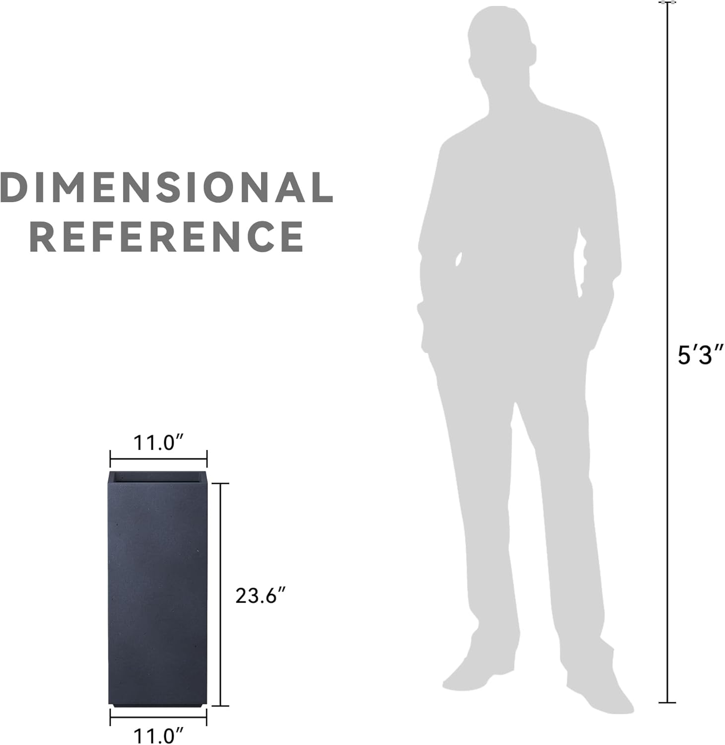 These elegant square planters have authentic concrete finish with visible pores make them beautiful contemporary pieces. The look and feel is true concrete but it weights substantially less than it looks. It also has very smooth finish instead of rough concrete potters you might be used to. The size is very generous and can hold a good amount of plants without looking crowded. It does have a more modern feel to it being straight lines and concrete. Would look great on apartment balcony or large backyard patio. These tall concrete planters are the best fit for modern designs. They feature clean angles and pure cement finish that will add refinement to your favorite space. Use them with tall plants for a dimensional effect. Made of lightweight concrete through an manufacturing process. This composite material has no ruber, plastic, and steel. This material has all the advantages of concrete such as strength, durability, weather and damage resistance. Materials involve cement and weather-resistant fiberglass. This material has strong UV resistant ability and stay well in wind, rain, hot and cold season. By adding fiberclay material, planter is much easier to move around due to its lighter weight.