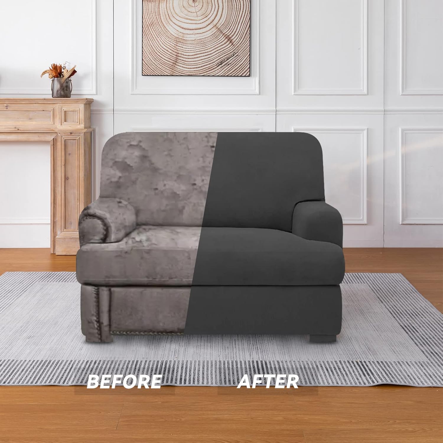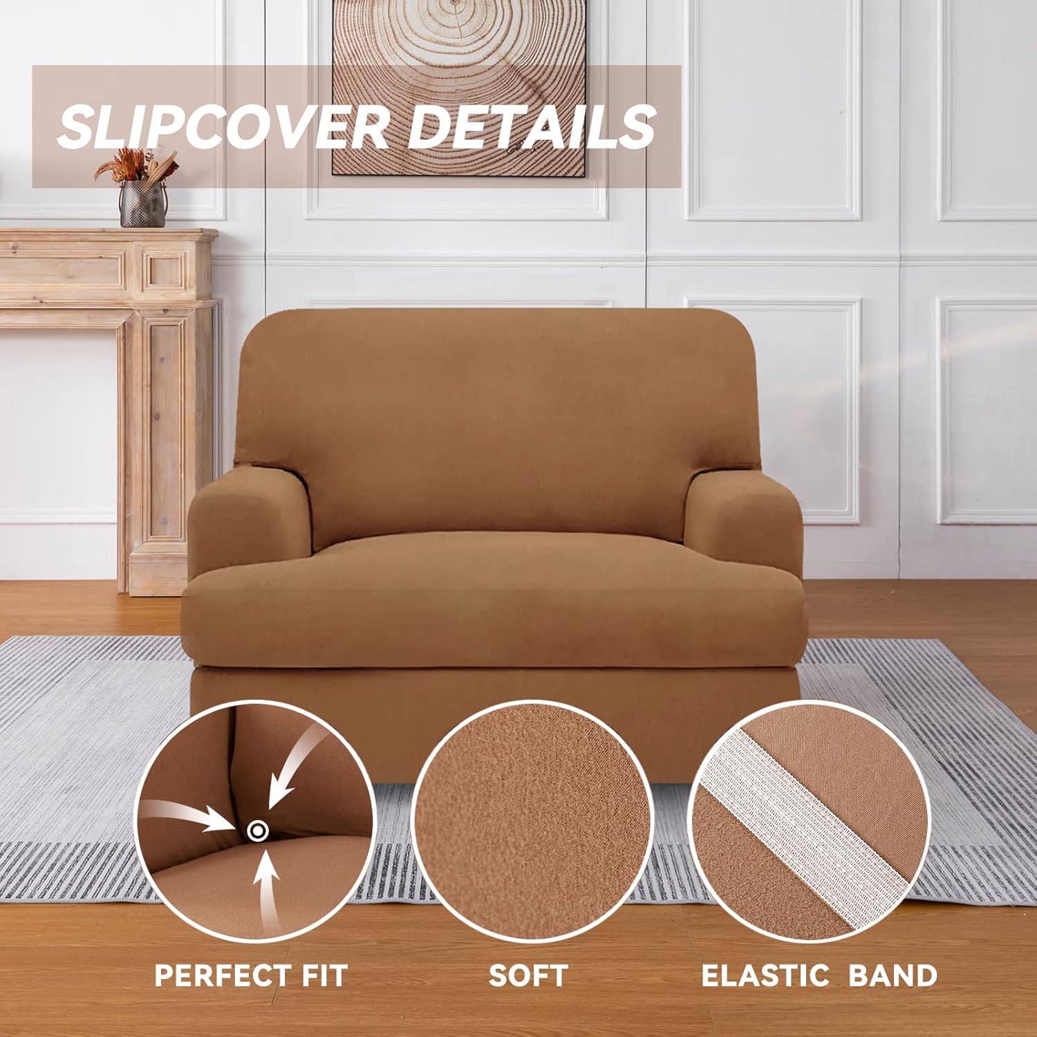 • 3 PIECE STYLE: These creative 3 PIECES t cushion loveseat slipcovers are sophisticated designed, including 1 piece of base cover and 2 individual T cushion covers.Best fit Loveseat between 58"-72" inches wide (left arm to right arm outside, straight across). High recommended for both leather and cloth furniture.