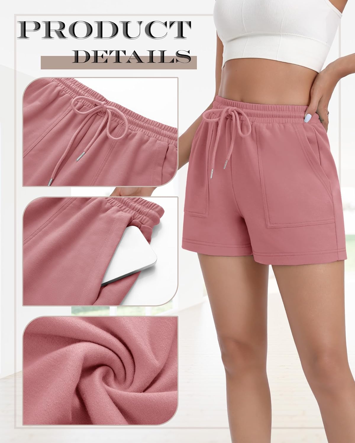 Features: Sweat-wicking and breathable: The fabric of these women's sweat shorts is sweat-wicking and breathable which can bring you a touch of coolness in the summer. Relaxed fit: Women's casual shorts make your legs look slender. Pair with your favorite comfy tops and sweatshirts for a number of looks. Specifications: Material: 60% Polyester, 35% Cotton and 5% Spandex Package includes: 4 Pack womens sweat shorts Notes: Manual measurement, please allow slight errors on size. The color may exist a slight difference due to different screen displays.