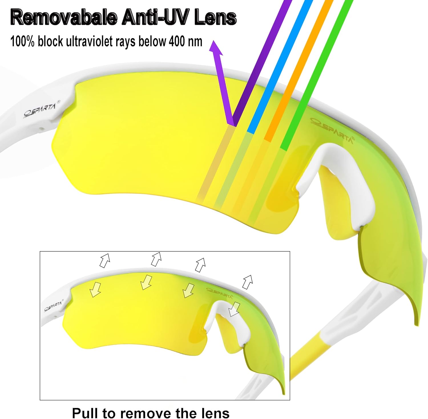 | Included Components | 1×sunglasses, 2×micro-fiber bags(one is used for storing glasses and the other is for storing the lenses), 1×lens cleaning cloth, 1×instruction sheet, 5×replacement lens(1×Revo coated lens, 1×polarized TAC lens, 1×yellow lens, 1×clear lens, 1×blue lens ), 1×EVA bag, 1×polarized test paper, 1×frame for replacement lens. |