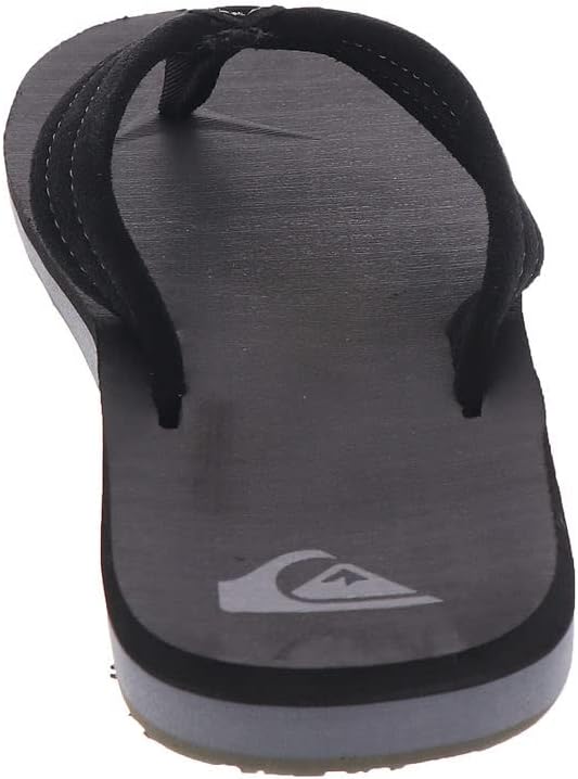*Flip flop sandal from Quiksilver *Soft suede leather upper with contrast stitching *Finely woven nylon toe post with herringbone texture *Slip-on fit *Compression molded textured footbed *Molded contour midsole with arch, heel, and forefoot support *Engineered gum rubber outsole incorporates multi-angled logo lugs for traction