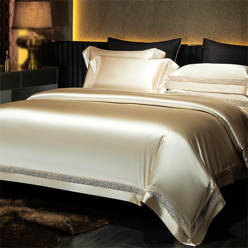 The higher the count, the finer the yarn.It has drapability and good wrinkle resistance.Long-staple cotton is soft, fast-heating, warm and comfortable.The embroidery process is and firm.The pillowcase and duvet cover have a wide edge for decoration and are very delicate.Specifications:1.5-1.8m bedQuilt cover: 200 * 230cm * 1, Bed sheet: 250 * 245cm * 1, main pillowcase: 48 * 74cm * 2, 1.8 * 2.0m bedQuilt cover: 220 * 240cm * 1, Bed sheet: 270 * 245cm * 1, main pillowcase: 48 * 74cm * 2, Set includes: Set * 1 (excluding other display items)Attention:1. Due to differences in lighting and screen, the product color may slightly differ from the image.2. Due to different measurement methods, please allow a size deviation of 1-3 centimeters.3. Bedding set does not include inner coreFashionable rounded bed sheet design with good drape for easy cleaning and maintenance
