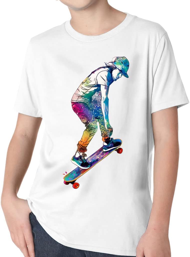 Not only is Skateboarding Design Kids' Classic Fit T-Shirt pleasing to the eyes with its colorful and stylish designs but it is also made with soft and cozy fabric that makes it non-saggy and durable to wear for many occasions to come. Colorful T-Shirt is made to gently fit the shoulders and arms and move without restrictions. A must-have for every child.