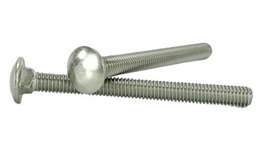 A carriage bolt, coach bolt or round head square neck bolt is a form of bolt used to fasten metal to wood. It is distinguished from other bolts by its shallow mushroom head and that the shank cross-section of the bolt is circular for most of its length, as usual, but the portion immediately beneath the head is formed into a square section. This makes the bolt self-locking when placed through a square hole in a metal strap, or a round hole in most wood. This allows the fastener to be installed with only a single tool, a spanner or wrench, working from one side. The head of a carriage bolt is usually a shallow dome. The squared section is of the same size as the diameter of the bolt shank, with a plain unthreaded shank. Carriage bolts were developed for use through iron strengthening plates on either side of a wooden beam. It is commonplace though to use them to bare timber, the squared section giving enough grip to prevent rotation.
