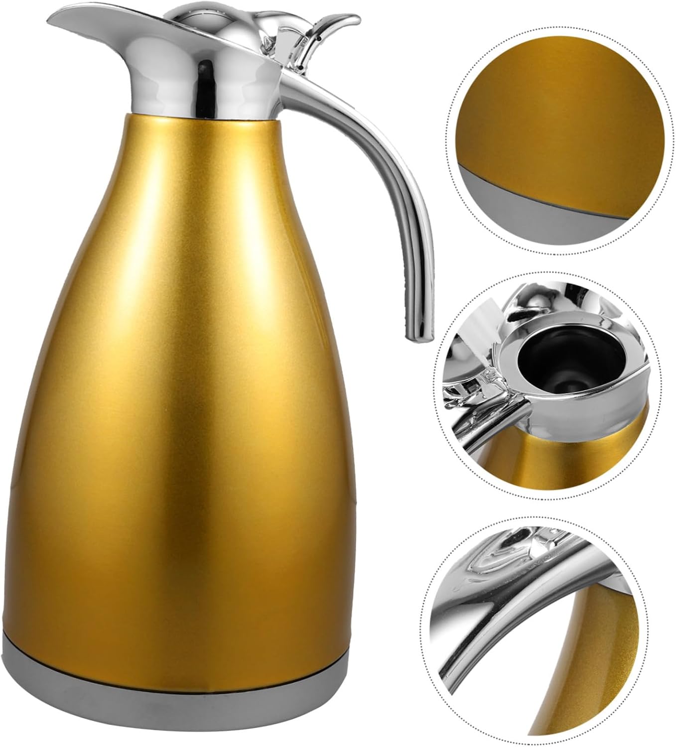 Package Include 1 x Thermal Bottle Characteristics - Capacity: 2L vacuum water bottle. - Material: Stainless steel. - Color: Golden. - Size: About 29 x 14 x 14cm. - An pot for coffee, tea, beverage, milk, etc stylish thermal bottle. - Made of material, and to use stainless steel bottle. - Wonderful your friends and families insulated water bottle. - Smooth surface, anti-leak, convenient to use vacuum pot. - Healthy and , no bad smell, clean interior and beautiful exterior.Goods Informationstainless steel bottle Made of stainless steel, the insulation bottle is study and .vacuum water bottle The inner part of the kettle is made from which makes it easy to clean and to use.insulated water bottle Are you looking for thermal bottle? The item will be a good choice.stylish thermal bottle Easy and convenient to use
