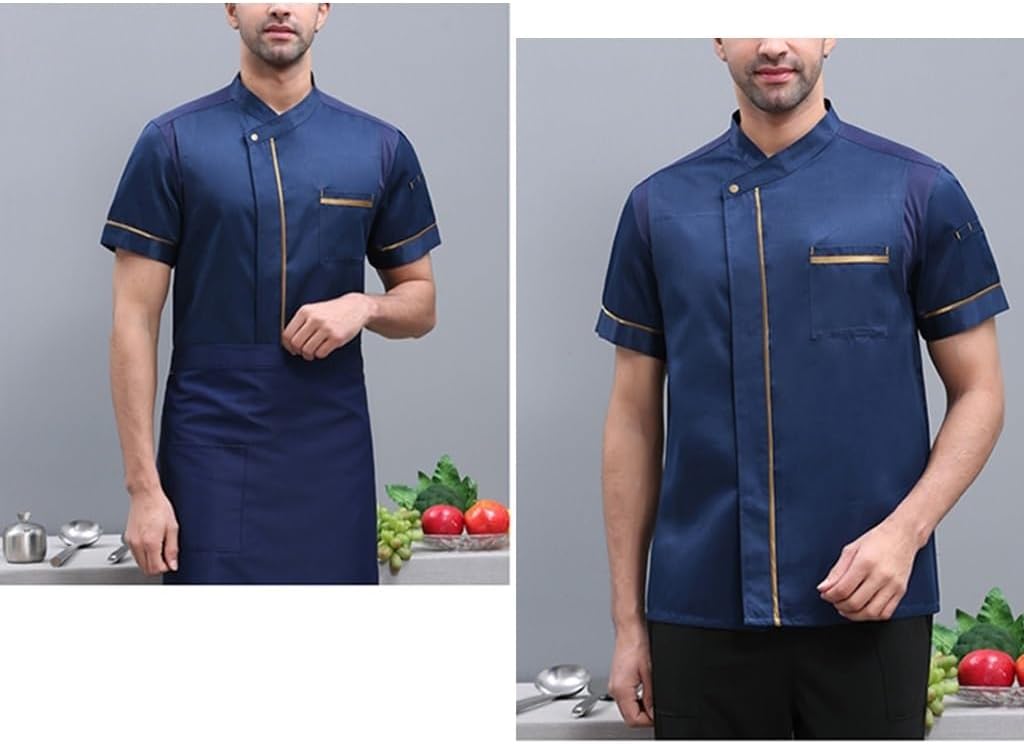 Professional chef working uniformPackage Content: 1 * Chef Jacket--The comfortable collar design makes people look energetic and capable, with a more fashionable sense.--Convenient pockets; convenient to store small items, free your hands, and enjoy the joy of working in the kitchen.--New and Distinctive design, suits both men and women ;--The craftsmanship is superb, and the convenient movement during work is not restricted.--Size: Please refer to the size chart by the last image; Please check the size clearly before purchasing, hand wash cold recommend.Washing Instruction: Cold water under 30 degree, hand wash; Do not bleach, do not tumble dry, do not iron.Note: 1.There could be a little smells for first wearing, please hang for a while, it will disappear.2.Due to different measurement methods, please allow 2-3cm measurements error, please understand!