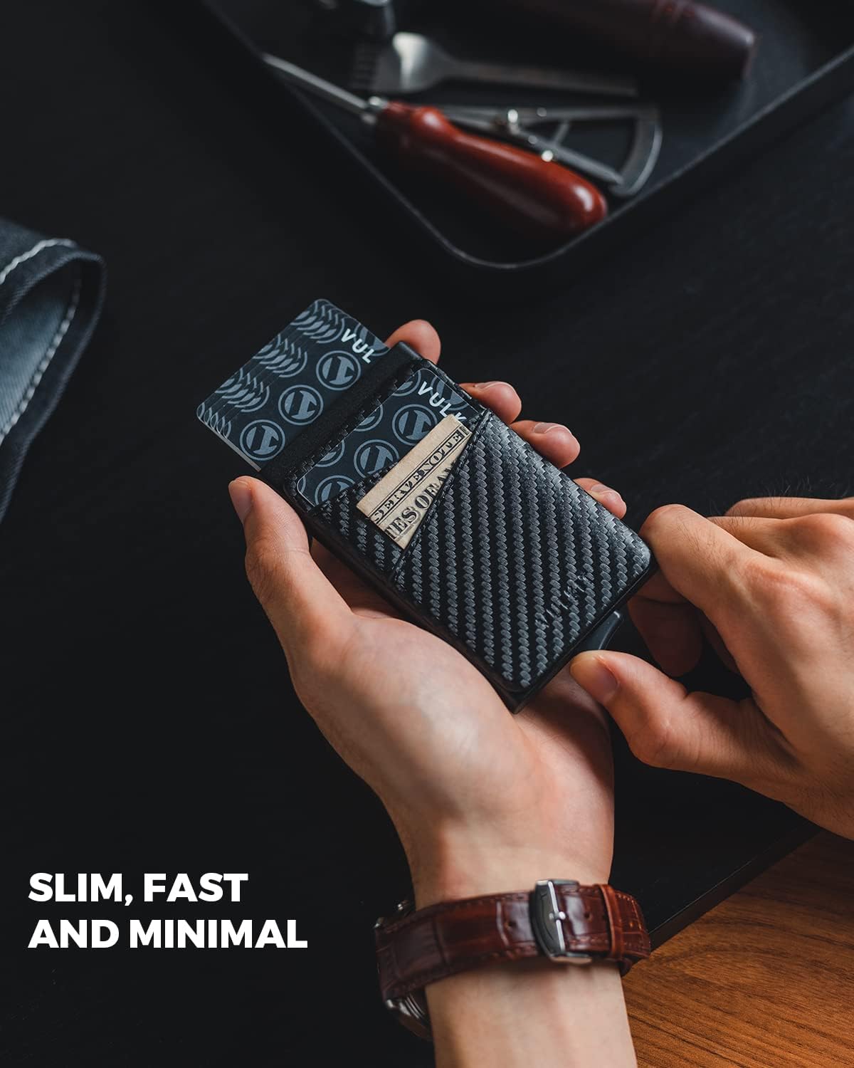 VULKIT Cardholder Wallet for Men Metal Wallets with RFID Blocking Layer Slim Minimalist Aluminum Wallet with Pop up Quick Card Access Business Card Holder, Holds up to 7 Cards