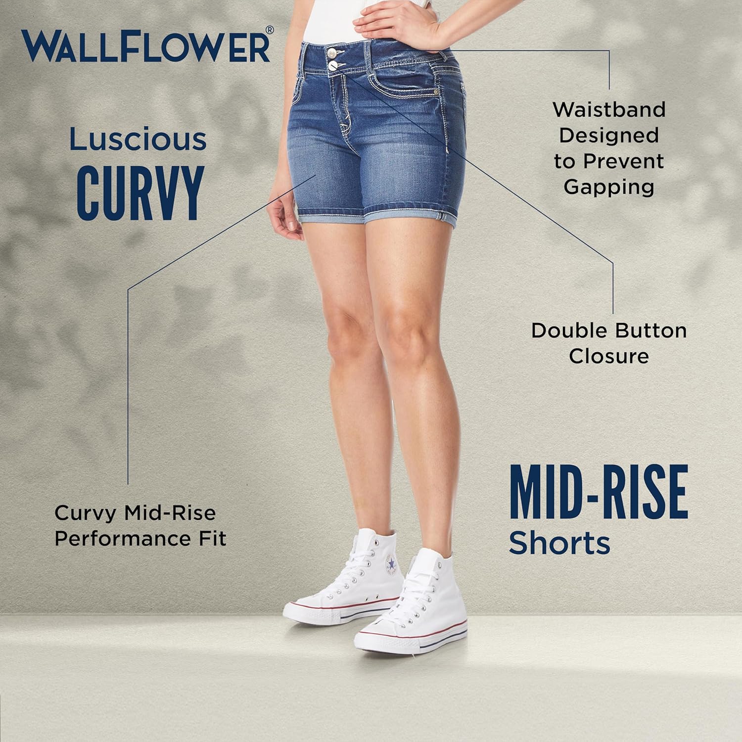 Womens wallflower shorts, jean shorts womens jean shorts womens stretchy are made in our stretchiest ever Insta Stretch denim with outstanding recovery and endless holding power, to keep your jean shorts looking amazing all day. These shorts for women denim are the ultimate summer staple! Complete your look with our curve enhancing, mid rise shorts for women, women's jean shorts, mid rise jeans for women. The contoured jean shorts womens mid rise, womens jean shorts waistband and roomier hips and thighs eliminate gapping so you can move with confidence. The classic double button closure on wallflower shorts for juniors, womens shorts denim go with everything. Choose the flirty 3" shorts or the laid-back 9" bermuda with summery braided belts. Perfect for your 90s, y2k, festival and everyday looks. Look and feel amazing in shorts for women, from size 0 to 24. Find petite jean shorts, mid size and plus size jean shorts, plus size shorts for women, plus size shorts, womens plus size shorts, plus size shorts for curvy women in different inseam lengths and styles. Made for Every Body. Period. Take your pick wallflower womens jean shorts mid rise, wallflower bermuda shorts for women, midi jean shorts and 3" inseam denim shorts women. Join our journey to more eco-friendly processes for more sustainable womens fashion, womens shorts. By 2026, we aim to source 50% of our women shorts cotton through the Better Cotton program—supporting water-efficient farming practices that benefit both farmers and the environment.